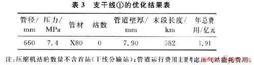 經(jīng)過計(jì)算,得到支干線①的優(yōu)化結(jié)果如表3所示。
