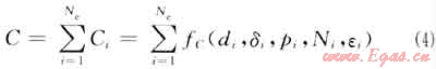 式中Ci為管網(wǎng)中第i條管道的運(yùn)行費(fèi)用,元。