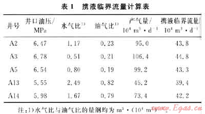 通過目前5口井的臨界攜液流量計算結果并與氣井產量進行比較后發(fā)現(xiàn):目前這5口井都沒有積液,不過A13井在短期內存在積液影響生產的風險。
