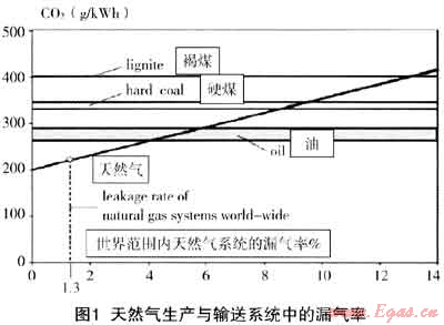 若天然氣的漏損率達(dá)到4%~6%其排放量相當(dāng)于油,若達(dá)到8%~13%則排放量相當(dāng)于不同煤種。
