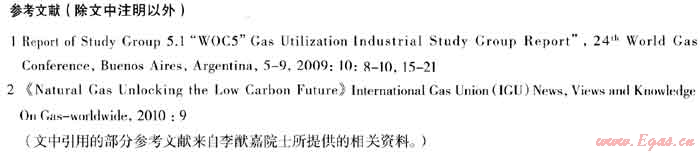 (5) 本文所引用的資料均是本世紀(jì)以來(lái)值得研究的數(shù)據(jù),從中可看出世界各國(guó)對(duì)本世紀(jì)能源構(gòu)成的共同發(fā)展方向。在化石燃料中,由于天然氣的碳/氫比較小,是唯一能滿(mǎn)足節(jié)能、減排要求的燃料,常稱(chēng)為環(huán)境友好燃料。在世界各國(guó)的能源構(gòu)成中,我國(guó)是所占比重最低的國(guó)家之一,改革開(kāi)放以來(lái)的變化也很小。增加1000億m3的天然氣,相當(dāng)于1.2億t的標(biāo)準(zhǔn)煤,按表2可算出燃料效率提高后的節(jié)能量和C02減排量。當(dāng)今世界年消耗天然氣約2.48億m3,相當(dāng)近29億t標(biāo)煤,在世界能源、減排中有舉足輕重的作用,到2030年估計(jì)全球天然氣消費(fèi)料將達(dá)4.5億m3-5億m3。國(guó)際研究表明,加上可再生能源,新能源和其它減排措施后,全球C02的濃度可能降低到1990年水平的要求。本世界以來(lái)天然氣已形成了較大的國(guó)際市場(chǎng),發(fā)展天然氣已成為各國(guó)應(yīng)對(duì)氣候變暖的首選方案。我國(guó)在國(guó)家“十二五”規(guī)劃綱要中已有反映。