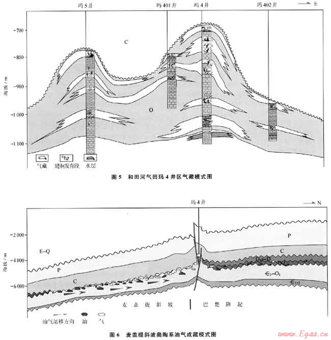 2) 和田河氣田的氣藏模式分析表明非構(gòu)造油氣藏是該區(qū)油氣勘探的主要對象,低部位的麥蓋提斜坡奧陶系風化殼巖溶儲層發(fā)育,是尋找大面積縫洞型油氣藏勘探的有利方向。