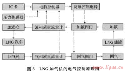 目前LNG加氣機控制系統(tǒng)的相關(guān)技術(shù)比較成熟,國內(nèi)公司在這個領(lǐng)域中已經(jīng)積累了相當豐富的經(jīng)驗。LNG加氣機控制系統(tǒng)采用工業(yè)級電子元器件,經(jīng)過嚴格的電磁兼容性和安全性試驗,保證了LNG加氣機在復(fù)雜環(huán)境中的使用。LNG加氣機一般配有符合國家標準防爆等級的打印機和IC卡預(yù)留口,并且提供RS485通信接口,以便與LNG加氣站計算機管理系統(tǒng)連接,滿足LNG加氣站的日常經(jīng)營和管理的需求,同時具有票據(jù)打印、加氣記錄查詢和報表統(tǒng)計處理等功能。圖3為LNG加氣機的電氣控制原理圖。