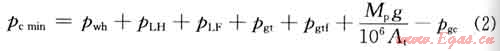 最小工作套壓是當柱塞及其以上液柱到達井口時所對應的井口套壓,已知卡定器下入深度和周期排水量,其最小工作套壓計算公式[6~7]為: