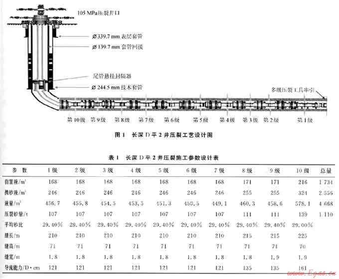 長深D平2井多級壓裂獲得了巨大突破和成功取得了“生產(chǎn)壓力高、產(chǎn)量高”的理想效果(表2)。