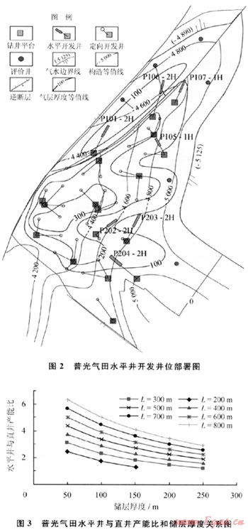 1) 普光氣田適合鉆水平井的條件為構(gòu)造低部位氣水邊界附近或氣層厚度達(dá)不到鉆直井(斜井)技術(shù)經(jīng)濟(jì)界限(134m)的區(qū)域。