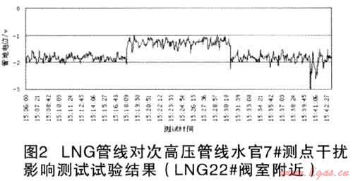 由于部分路段次高壓天然氣管道與上游LNG管道和成品油管道并行(采用外加電流陰極保護(hù)),為了判斷LNG管線對(duì)次高壓管線的影響,技術(shù)人員進(jìn)行了現(xiàn)場(chǎng)測(cè)試,主要包括:LNG管線的保護(hù)電位、次高壓管線保護(hù)電位,并在LNG管線平湖門站陰極保護(hù)站恒電位儀開10分鐘一停10分鐘一開10分鐘共30分鐘的時(shí)間段內(nèi),用記錄儀檢測(cè)了次高壓管線的陰極保護(hù)電位波動(dòng)情況。通過檢測(cè)發(fā)現(xiàn),LNG管線和次高壓管線閉路電位都不穩(wěn),波動(dòng)較大。