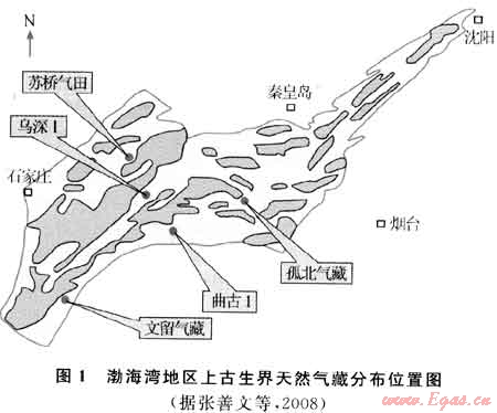 ①蘇橋C02氣田。②孤北氣田、黃驊坳陷千米橋氣田。③大港南烏馬營潛山構(gòu)造烏深1井奧陶系天然氣流。④東濮凹陷三疊系的天然氣流;文留氣藏文古1井、濮深1井、慶古1井奧陶系風(fēng)化殼發(fā)現(xiàn)CO2氣流等(圖1)。