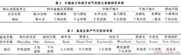 美國目前的產(chǎn)氣頁巖主要集中在泥盆系和密西西比系(下石炭統(tǒng))等層系,以晚古生代頁巖為主(表3)。