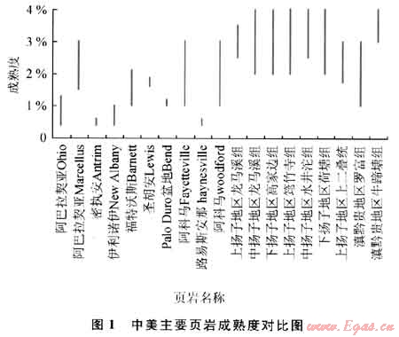 為了盡量避免勘探風險,筆者認為成熟相對較低的頁巖可能具有較好的勘探前景,在中國南方地區(qū)大范圍高成熟度的條件下,要尋找成熟度相對較低的區(qū)域,并加強含氣量和保存條件的研究。