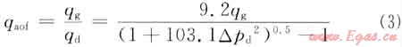 由一般二項式pr2-pwf2=Aqg+Bqg2和qaof表達(dá)式pr2-0.1012=Aqaof+Bqaof2推導(dǎo)出對比參數(shù)二項式,即△pd2=Aqd+(1-Ad)qd2,一點法二項式絕對無阻流量表達(dá)式為: