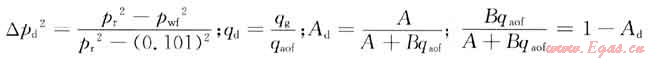 1) 有些學(xué)者用對比參數(shù)推導(dǎo)出氣井二項式A、B系數(shù)表達(dá)式,由測試一點數(shù)據(jù)即可求出A、B值,并列出二項式產(chǎn)能方程。即