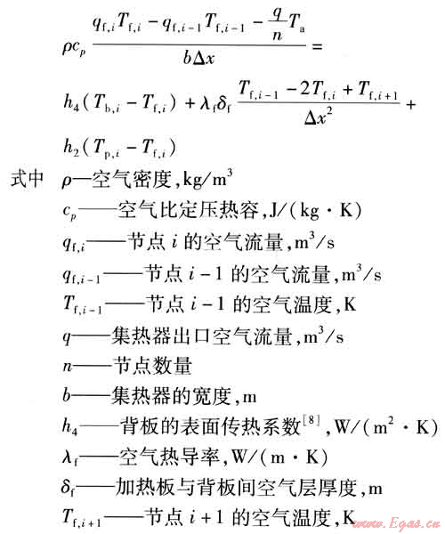 對于吸熱板,節(jié)點i的能量平衡方程為: