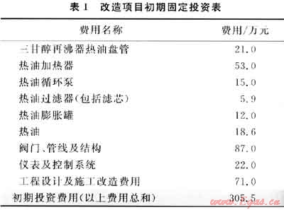 根據(jù)目前崖城氣田使用的相關設備的市場價格,可以估算出整個改造項目的初期投資費用為305.5萬元,改造項目初期固定投資列表見表1。