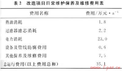 經改造后,整個系統(tǒng)的日常維護保養(yǎng)及維修均納入氣田生產設施制度化管理的范圍內,按照目前氣田相同設備的維修和維護成本估算,其費用支出為35.1萬元/a,改造項目日常維護保養(yǎng)及維修費用列表見表2。