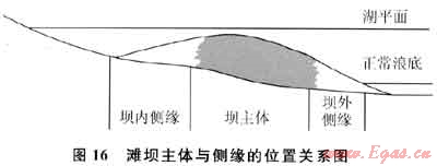由河流攜帶的物質(zhì)一旦進(jìn)入湖泊后,將受到波浪和湖流的簸洗、改造和再分配,形成脫離了三角洲體系的新的湖泊相砂體?,F(xiàn)代湖盆不乏實例。云南滇池東北岸由于常年受西南季風(fēng)的強烈作用,波浪和表層風(fēng)成流垂直或高角度作用于岸線,形成強烈的沿岸流和局部性沿岸漩渦流,使馬料河、落龍河入湖的物質(zhì)受到強烈破壞、改造和再分配形成與岸線平行的濱岸障壁砂壩。