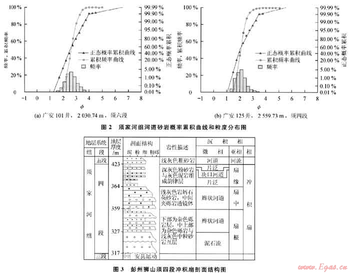 河流沉積體系主要分布于川中前陸隆起帶近物源的中、南部的須二-須六段,平面分布受南高北低的古地形控制,辮狀河和曲流河都有發(fā)育,以前者為主,但以后者更典型。