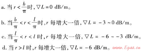 面聲源隨傳播距離增加產(chǎn)生的聲壓級衰減值與面聲源形狀有關(guān)。如某鍋爐房的風(fēng)機(jī)房,設(shè)風(fēng)機(jī)房長為f,寬為b,隨著傳播距離r的增加,聲壓級衰減梯度▽L與r的關(guān)系為: