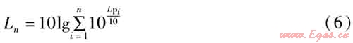 式中Ln——由n個聲源疊加后的總聲壓級,dB