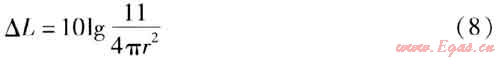 點聲源隨傳播距離增加產(chǎn)生的聲壓級衰減值為: