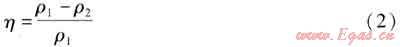 式中ρ1、ρ2——旋風分離器進口和出口管道的粉塵質(zhì)量濃度,g/m3