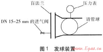 對于水平管道,清管球的清掃時間一般為充入相應管道0.1MPa空氣所需時間的2~3倍。如果時間過長,且發(fā)球端壓力表長時間無變化,管道末端一直有少量空氣排出,則可以判斷為卡球。