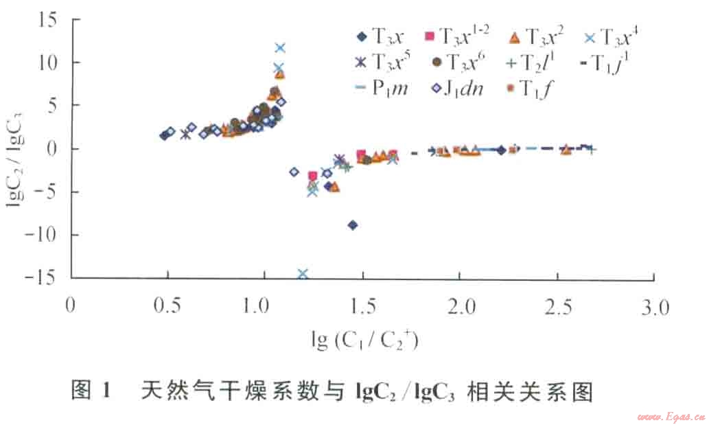 從天然氣的干燥系數(shù)與重烴關系圖上看(圖1),上三疊統(tǒng)的天然氣干燥系數(shù)相對較低、重烴含量相對較高,具有低熟自源氣的特征。部分上三疊統(tǒng)氣井的天然氣展示出干燥系數(shù)較高、重烴比值較低的特征,與下伏層系產(chǎn)出的天然氣混為一體,表明這些氣藏(井)有深部氣源混入。