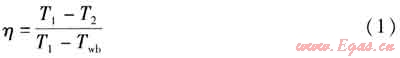 直接蒸發(fā)冷卻的空氣處理過(guò)程的蒸發(fā)冷卻效率定義為: