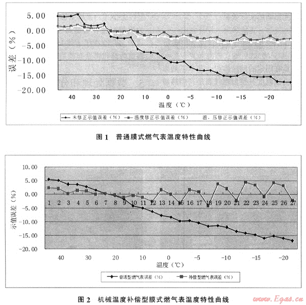 實(shí)驗(yàn)表明:機(jī)械溫度補(bǔ)償型燃?xì)獗砜梢酝ㄟ^(guò)機(jī)械的方法改變環(huán)境溫度對(duì)儀表的影響,從而使儀表不遵守氣體狀態(tài)方程,實(shí)現(xiàn)燃?xì)獗淼臏囟妊a(bǔ)償,補(bǔ)償效果在全溫度范圍內(nèi)有效可靠,補(bǔ)償效果的準(zhǔn)確性、一致性、穩(wěn)定性、有效性可以滿足要求,建議小批量試裝。