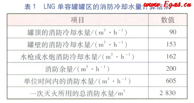 該LNG單容罐罐區(qū)的消防冷卻水量計算結(jié)果見表1。