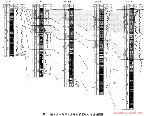 該組厚度一般分布在300~500m,由古隆起軸部向南北兩側增厚,厚者在750(強1、曾1井)~950m(寧2井)。威遠-資陽地區(qū)的筇竹寺組厚度一般在300~500m之間。筇竹寺組頂界埋深一般在4~5km,僅威遠地區(qū)小于3km,而川東地區(qū)埋深較大,一般大于5km。