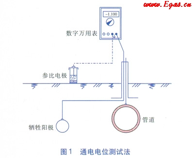 城鎮(zhèn)燃?xì)夤艿蓝酁槁竦胤笤O(shè),由于土壤中含有水分、空氣、酸、堿、水溶性礦物鹽以及微生物,這些因素都會使金屬管道發(fā)生腐蝕。金屬腐蝕直接和間接造成了巨大的經(jīng)濟(jì)損失,因此,必須采取有效的防腐措施,實(shí)踐證明控制管道腐蝕的主要方法是采用防腐層和陰極保護(hù)。對金屬管道的陰極保護(hù)進(jìn)行測試和評價(jià),可以及時(shí)發(fā)現(xiàn)管道腐蝕和安全隱患,最大程度降低經(jīng)濟(jì)損失。采用犧牲陽極和3PE防腐層聯(lián)合保護(hù)的次高壓燃?xì)夤艿?,通常采用通電電位測試法和斷電電位測試法進(jìn)行陰極保護(hù)測試。