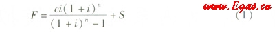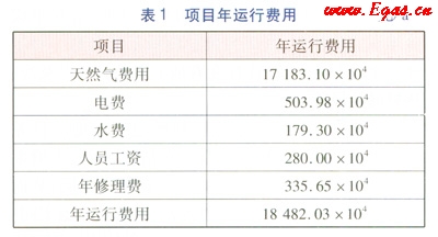 天然氣是一種清潔、優(yōu)質(zhì)、使用方便的能源。與燃煤鍋爐房相比,燃?xì)忮仩t房可省去脫硫、除塵、上煤、除渣等設(shè)備,無需煤、渣堆場,節(jié)省用地,運行管理較簡單。該項目供熱面積為612×104m2,鍋爐熱效率取0.95,天然氣的低熱值為35.16MJ/m3,天然氣額定耗量為36400m3/h。天然氣價格按1.65元/m3計算,電價按0.59元/(kW·h)計算,水價按5.5元/t計算,人員工資按4×104元(人·a)計算,年維修費按設(shè)備造價的1.8%計算。項目年運行費用見表1。由表1可知,項目的年運行費用為18482.03×104元/a。項目造價為25140.38×104元,使用壽命為20a,年收益率為5%。采用費用年值法對項目進行經(jīng)濟性分析,費用年值F的計算式為: