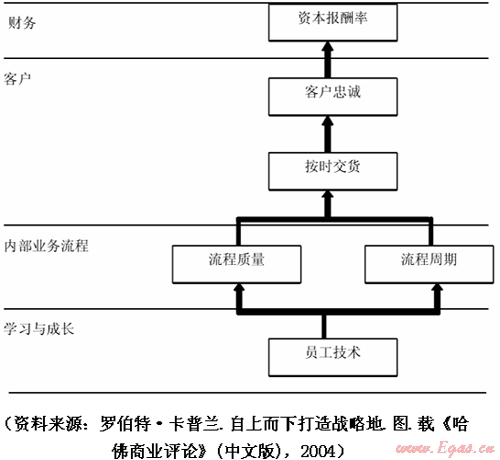 當(dāng)企業(yè)樹立了的長遠(yuǎn)發(fā)展目標(biāo)之后, 戰(zhàn)略的作用就是為解決“如何才能達(dá)到這個(gè)目標(biāo)”的問題提供思路。平衡計(jì)分卡的成功之處就是將企業(yè)戰(zhàn)略置于管理的中心, 所以企業(yè)要應(yīng)用平衡計(jì)分卡, 須以戰(zhàn)略作為企業(yè)的導(dǎo)向。