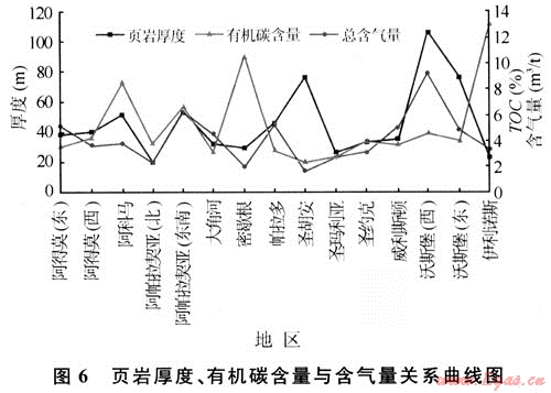 需要指出的是,頁巖有效厚度的下限不是一個固定值,其隨著頁巖氣藏鉆、完井技術(shù)的進(jìn)步而變化。北美在頁巖氣藏開發(fā)的早期是打直井,當(dāng)時確定的頁巖有效厚度下限值為30m。目前,由于水平井鉆井技術(shù)和水力壓裂、分段壓裂等完井技術(shù)的成功應(yīng)用,頁巖有效厚度下限值已降至10~15m。將來在技術(shù)進(jìn)一步提高、開發(fā)成本不斷降低的情況下,只要是在技術(shù)允許范圍內(nèi)的頁巖厚度都會是有效頁巖厚度[2]。