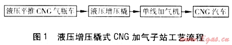 目前,適宜與加油站合建的CNG加氣子站有兩種:一種為液壓增壓橇式CNG加氣子站,另一種為液壓壓縮機式CNG加氣子站。
