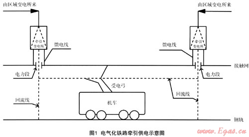 電氣化鐵路牽引供電電流種類可分為3種電流制:直流制、低頻單相交流制和工頻單相交流制。目前,我國電氣化鐵路均為采用工頻單卡H25kV交流制。這種電流制式不需要在牽引變電所設置整流和變頻設備,能直接從具有強大容量的電力系統(tǒng)取得電能,并以較高的電壓向電力機車供電,使牽引變電所的供電設備簡單化,牽引變電所間距離增大,接觸導線截面縮小,減少了電能的損失,降低了建設投資和運營費用[1]。