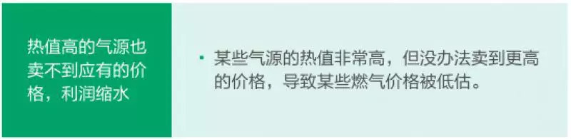 雖然以上氣源均滿足國家標(biāo)準(zhǔn)對于天然氣熱值的要求,但是不同的氣源生產(chǎn)的天然氣組份的差異導(dǎo)致的發(fā)熱值的差異明顯,而下游用戶沒有意識或者權(quán)利能選擇高熱值天然氣。