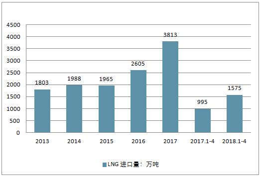 2013-2018年我國 LNG 進(jìn)口量(單位:萬噸)