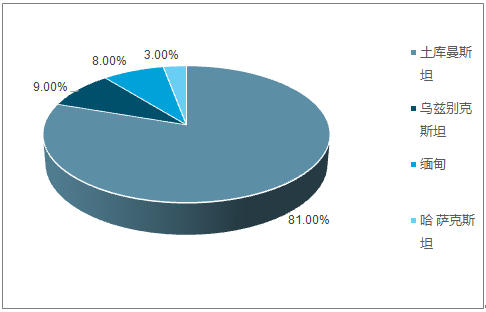 我國的進(jìn)口管道氣主要來自于土庫曼斯坦, 2017年我國從土庫曼斯坦共進(jìn)口管道氣 2451 萬噸(約合 328 億立方米),占去年管道氣進(jìn)口總量的 80.5%,其次烏茲別克斯坦、緬甸、哈薩克斯坦也是我國的管道氣進(jìn)口國