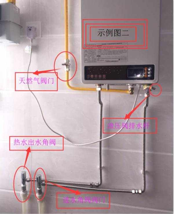 第一步:關(guān)閉圖一的進(jìn)水PPR截止閥、銅球閥或者圖二的進(jìn)水角閥閥門,并關(guān)閉天然氣閥門。