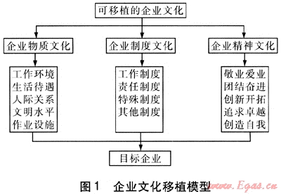 事實(shí)證明,買(mǎi)到技術(shù)、產(chǎn)品和服務(wù)易如反掌,而要重復(fù)一個(gè)企業(yè)的文化和經(jīng)營(yíng)方式則極為困難。因此,燃?xì)馄髽I(yè)在合資、兼并收購(gòu)其他企業(yè)后,要成功移植企業(yè)的優(yōu)質(zhì)文化,需要經(jīng)歷一個(gè)比較艱難的過(guò)程。結(jié)合企業(yè)文化的內(nèi)容,企業(yè)文化擴(kuò)張方式應(yīng)該是建立在企業(yè)精神的基礎(chǔ)上,以完整的管理制度為依托,以鮮明的企業(yè)形象為載體,符合目標(biāo)消費(fèi)群的精神和物質(zhì)需要[5]。企業(yè)文化移植模型見(jiàn)圖1。