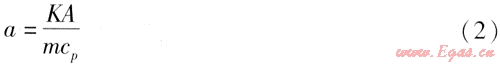 由于冷水溫度不斷變化,室內(nèi)空氣平均溫度等也會出現(xiàn)波動,因此K不為常量。該工程冷水機組關(guān)機與開機的時間間隔約8h,冷水溫升較小,且室內(nèi)空氣平均溫度等變化不大,對傳熱系數(shù)的影響較小,因此在計算中將K視為常量。對于確定的空調(diào)系統(tǒng),A、m、cp均為定量,令: