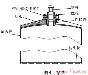 在鉆頭切削鉆進(jìn)的過程中,必須有水沖洗鉆頭,水流的速度可自行控制,為了使水流入正在旋轉(zhuǎn)的鉆頭內(nèi),設(shè)計了入水口,實現(xiàn)了水對鉆頭的冷卻、潤滑和排屑作用。
