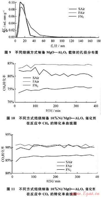 表1 不同方法制備4%MgO-Al203載體的物理性質(zhì)比較表