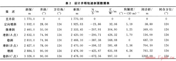 直井段采用自浮式單點測斜儀和電子多點測斜儀監(jiān)測;造斜段和水平段用無線隨鉆測斜儀全程跟蹤監(jiān)測,用電子多點測斜儀復(fù)測。