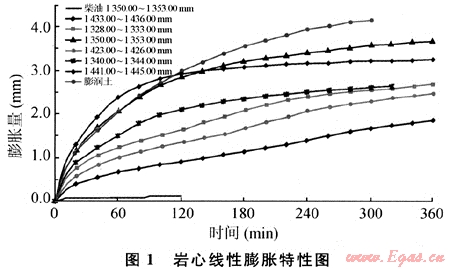 2) 儲層巖石中黏土礦物含量高。黏土礦物中以膨脹性蒙脫石為主,黏土線性膨脹大,水敏性極強。巖石中黏土礦物含量10%~30.0%,其中蒙脫石含量為70%~80%,巖心粉清水線性膨脹量達(dá)到4.0mm,水敏指數(shù)0.71~0.95,水敏性極強(見圖1、表1)。