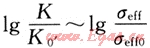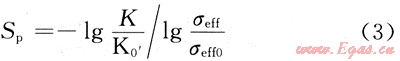 從前面的分析得知低滲透儲層巖石在覆壓實驗中發(fā)生的不是理想線彈性變形,因而按指數(shù)式擬合實驗數(shù)據(jù)相關(guān)性不是最佳。為了能更好地利用實驗數(shù)據(jù),并將其與油氣藏工程相結(jié)合,筆者提出一種新的應(yīng)力敏感評價指標(biāo)表征低滲透巖樣滲透率與有效覆壓的關(guān)系[10~11]: