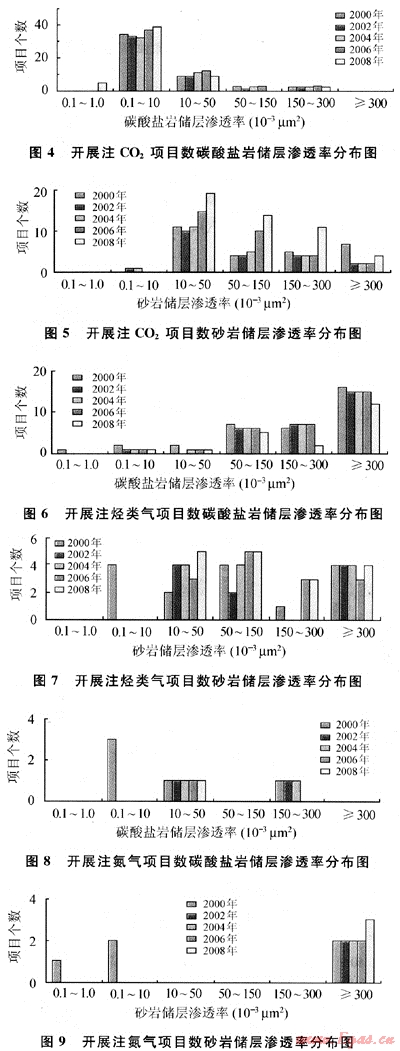美國《油氣雜志》200002008年發(fā)表的《世界EOR調(diào)查報告》[1~5],從7個方面說明了注氣條件以及發(fā)展趨勢。