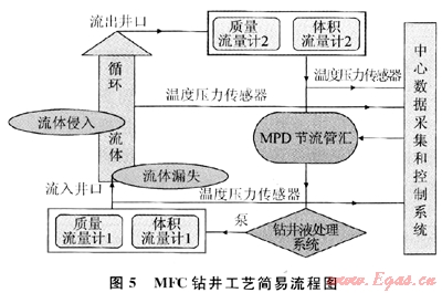 MFC鉆井是通過監(jiān)測(cè)微進(jìn)口流量或出口流量,來實(shí)現(xiàn)監(jiān)測(cè)鉆井液總流量的微小波動(dòng)范圍,也是一種精確確定孔隙壓力與破裂壓力的鉆井方法。探測(cè)到小的流失與侵入,然后通過一定的方法來調(diào)整返回流量(通過回壓泵與節(jié)流閥的共同作用或只調(diào)節(jié)節(jié)流閥來實(shí)現(xiàn)),結(jié)果使井底壓力平衡地層壓力。